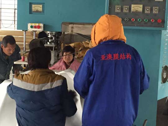 臨沂膜結構車棚加工現場(chǎng)參(cān)觀